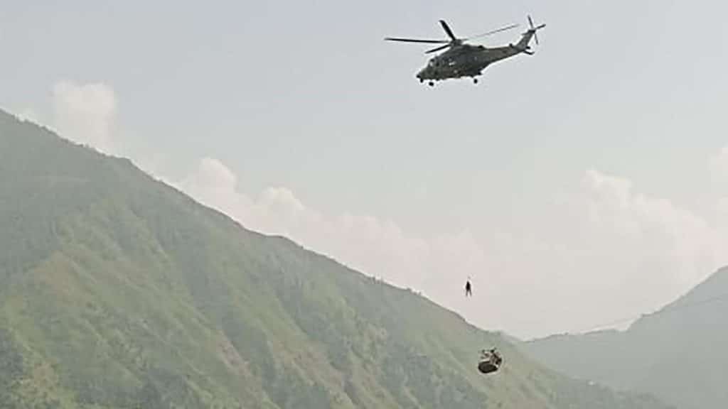 त्रिशूलीमा फसेका दुईजनाको हेलिकप्टरमार्फत उद्धार